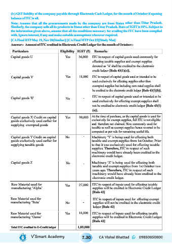 Answer:- Amount of ITC credited to Electronic Credit Ledger for the month of October:-