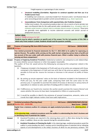 Answer ➢ Analytical Procedures are required in the planning phase and it is often done during the testing