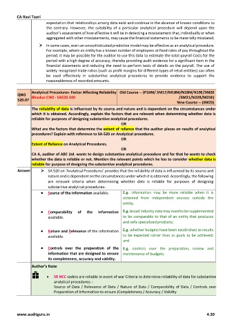 Answer ➢ SA 520 on ‘Analytical Procedures’ provides that the reliability of data is influenced by its source and