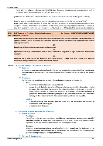 QNO B/S( Reserve vs Provision & Capital vs Revenue Old Course -- (M19M/M19R/N22M/M21E)
