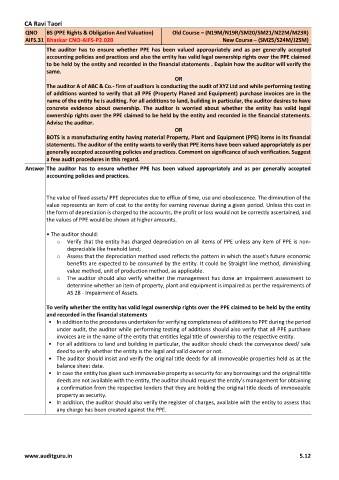 Answer The auditor has to ensure whether PPE has been valued appropriately and as per generally accepted