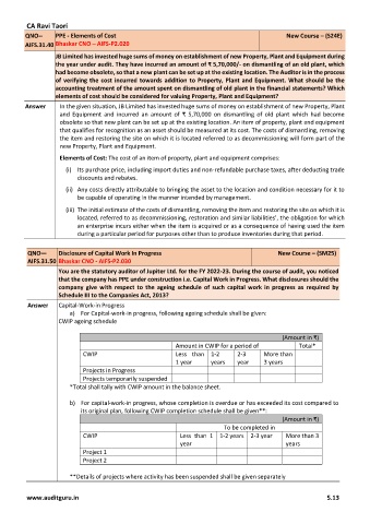 QNO— Disclosure of Capital Work In Progress New Course – (SM25)