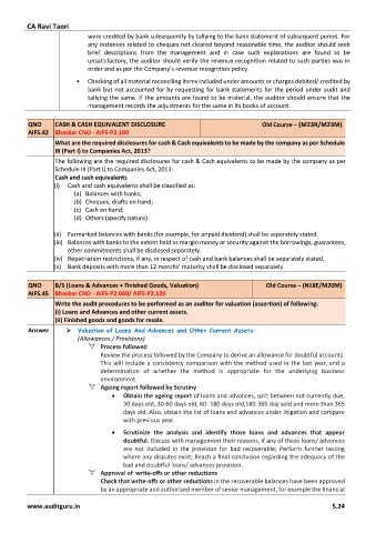 Answer ➢ Valuation of Loans And Advances and Other Current Assets:
