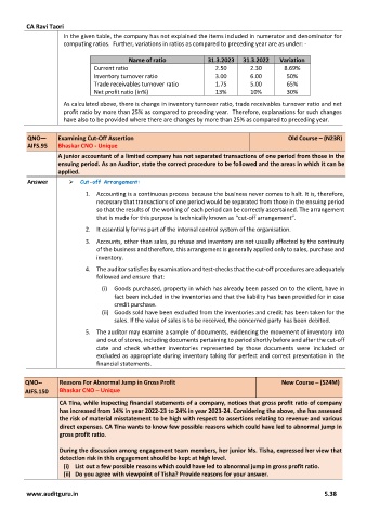 (i) List out a few possible reasons which could have led to abnormal jump in gross profit ratio.