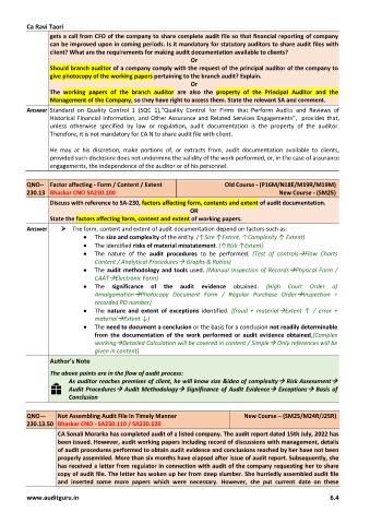 Answer ➢ The form, content and extent of audit documentation depend on factors such as: