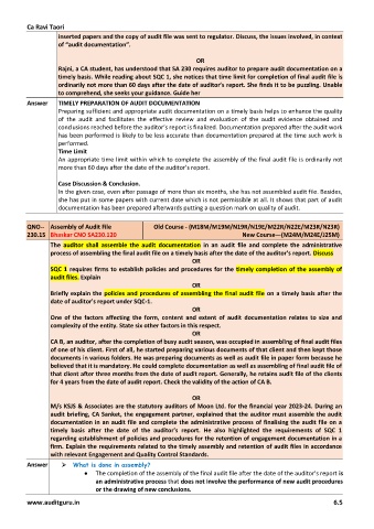 Answer TIMELY PREPARATION OF AUDIT DOCUMENTATION