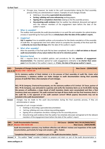 QNO-- Examples of Changes During Audit Assembly New Course – (S24M/S24E)