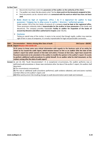 • The auditor can retain the documents only if he has done work on the documents assigned to him;