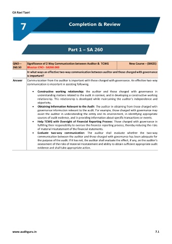 QNO— Significance of 2 Way Communication between Auditor & TCWG New Course – (SM25)