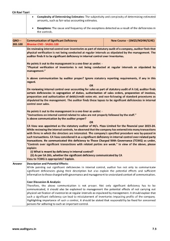 (ii) As per SA 265, whether the significant deficiency communicated by CA