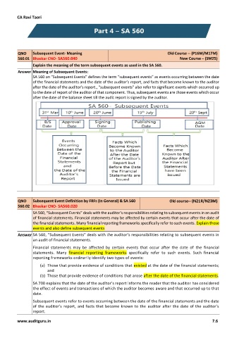 Answer SA 560, “Subsequent Events” deals with the auditor’s responsibilities relating to subsequent events in
