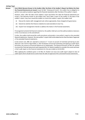 to amend the financial statements and requested the CA. Rashmi (auditor) to consider this event and issue