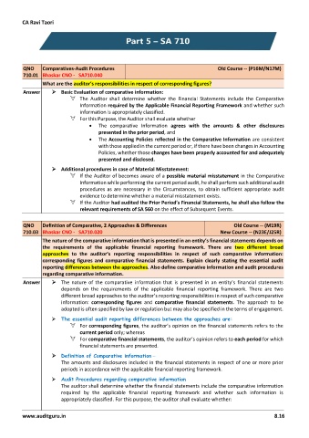 reporting differences between the approaches. Also define comparative information and audit procedures