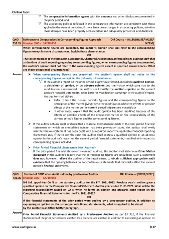 Answer ➢ When corresponding figures are presented, the auditor’s opinion shall not refer to the
