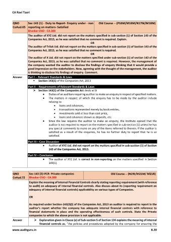 to audit) on adequacy of internal financial controls. Also discuss about its (reporting requirement on