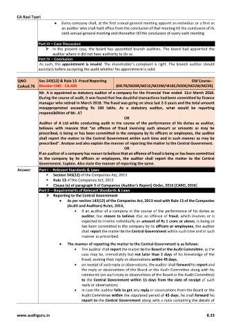 • The auditor shall report the matter to the Board or the Audit Committee, as the