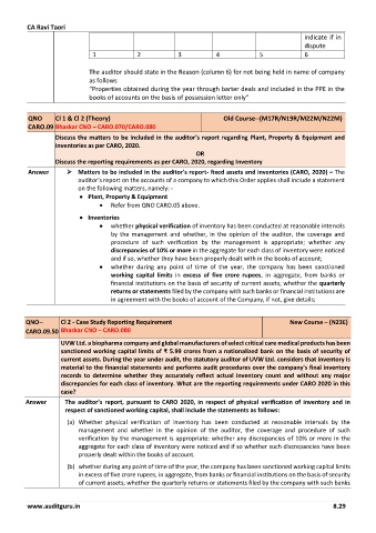 Answer ➢ Matters to be included in the auditor's report- fixed assets and inventories (CARO, 2020) – The