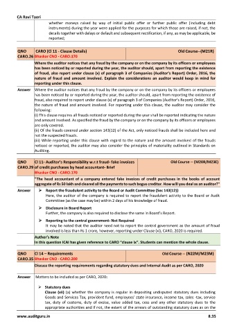 Answer Matters to be included as per CARO, 2020: