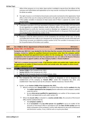 ➢ In the given case where CA D was appointed as Statutory Auditor of Head office of RJ Ltd and CA