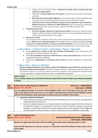 restaurant is run by the Cinema, its accounts should be checked. The audit should cover sale
