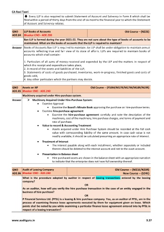 Answer ➢ Machinery Acquired Under Hire-Purchase System:
