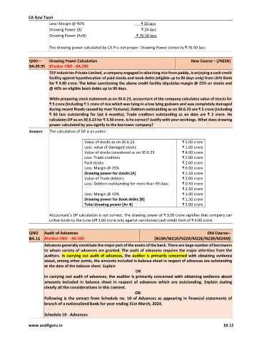The drawing power calculated by CA P is not proper. Drawing Power comes to ₹ 76.50 lacs.