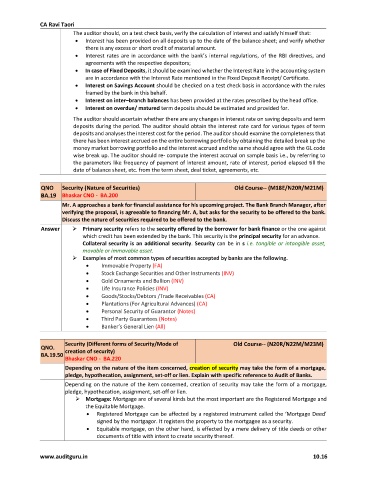 pledge, hypothecation, assignment, set-off or lien. Explain with specific reference to Audit of Banks.