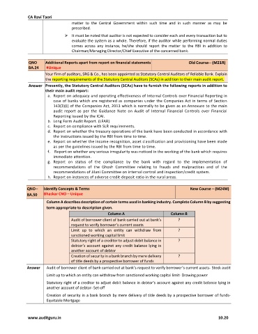 Your firm of auditors, SRG & Co., has been appointed as Statutory Central Auditors of Reliable Bank. Explain