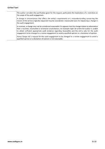 Hence Deepa Ltd.’s request for the audit engagement to be changed to a review engagement to avoid a