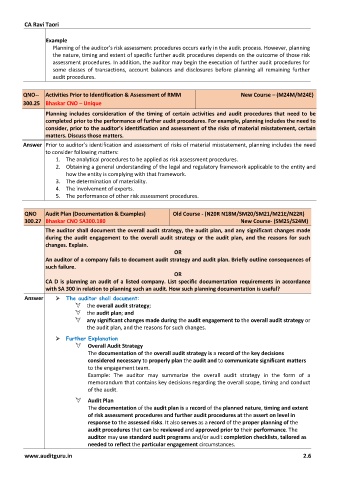 Answer Prior to auditor’s identification and assessment of risks of material misstatement, planning includes the need