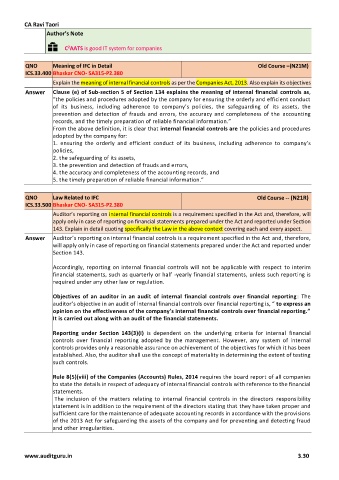 Answer Auditor’s reporting on internal financial controls is a requirement specified in the Act and, therefore,