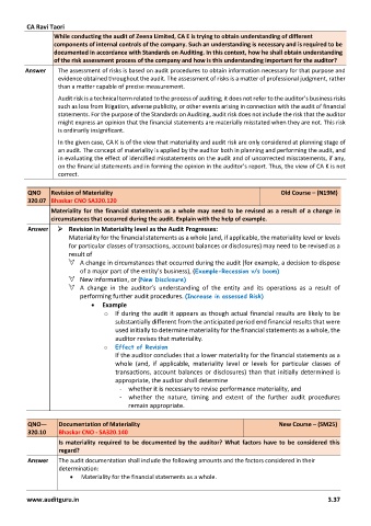 Answer ➢ Revision in Materiality level as the Audit Progresses: