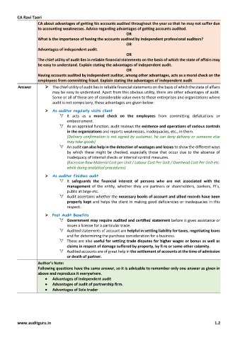 may be easy to understand. Apart from this obvious utility, there are other advantages of audit.
