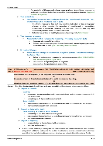 Discuss the impact of IT related risks on Substantive Audit, Controls and Reporting.